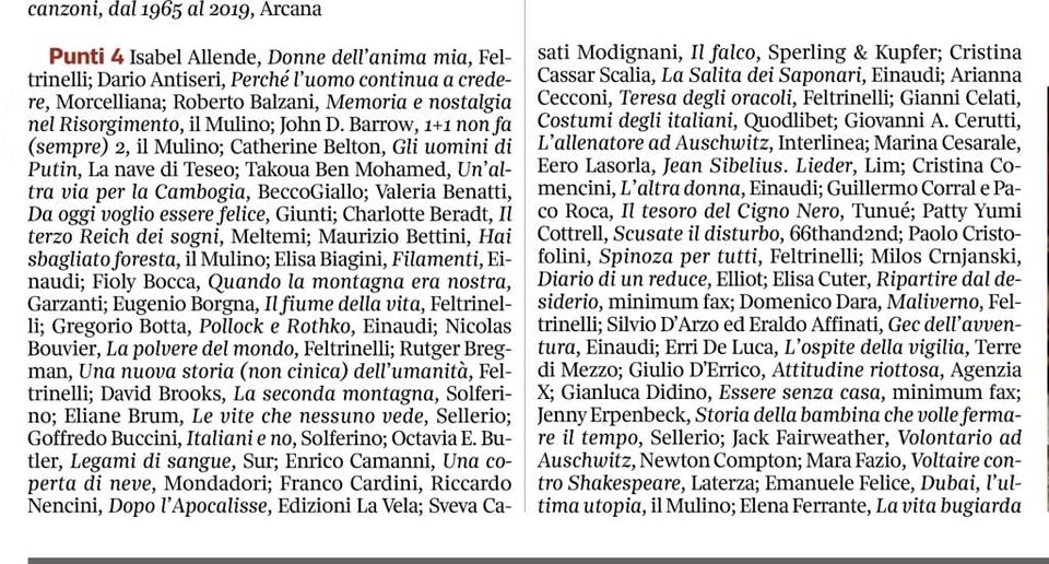 La Lettura del Corriere ha pubblicato le sue Classifiche di Qualità. Essere senza casa ha preso quattro voti – grazie ai giurati che l’hanno votato.